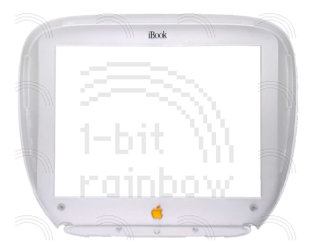 Original Apple Tangerine display bezel and bezel shield for the original models of iBook G3 Clamshell. This A-grade item will have no cracks around the Apple logo.