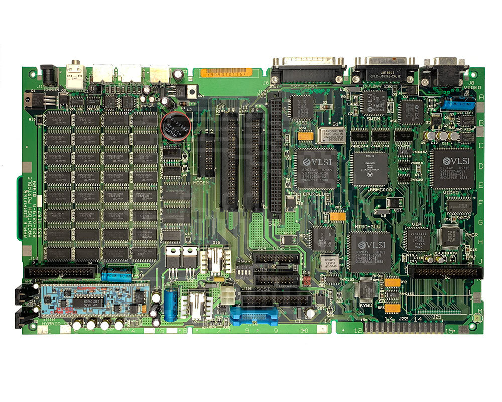 Original Apple, fully functional, re-capped main logic board for the original Macintosh Portable, non-backlit version. This uses a 16MHz Motorola 6800 processor and has 1MB onboard RAM.