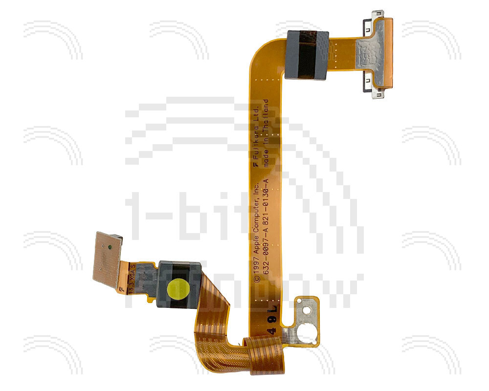 LCD data (LVDS) flex cable for the 13.3" active matrix (TFT) display models of Wallstreet PowerBook G3. This cable connects to the logic board, passes around the left hand hinge and then connects to the back of the LCD panel within the lid. It will NOT work with the 12" logic board.