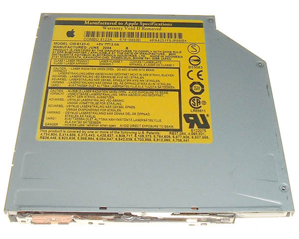 Original Apple internal, ATA, slimline, slot-loading combo drive (CD-ROM, CD-R, CD-RW, DVD-ROM) suitable for any model of iBook G4 or PowerBook G4 (Titanium or Aluminium). It was originally used in the iBook G4 and aluminium G4 PowerBooks and although it has a faster write speed than the earlier 8121A model used in the early Titanium G4 PowerBooks, it is fully compatible. Optical bezel sold separately. This drive does not burn DVDs.
